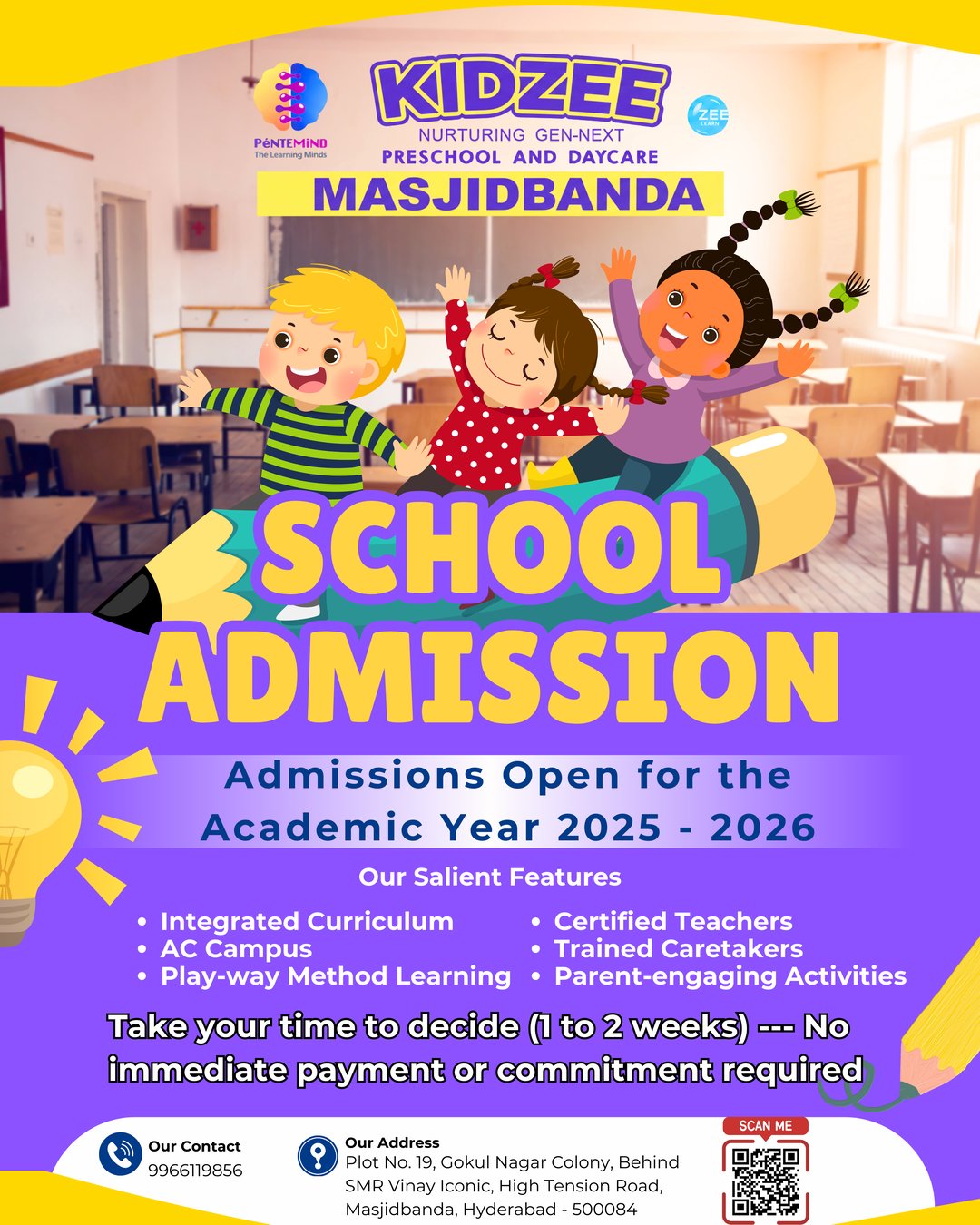 KIDZEE MASJIDBANDA Plot no. 19, Gokul Nagar Colony, Sri Maruthi Nagar Colony, Masjid Banda, High Tension Road, behind SMR VINAY ICONIA,